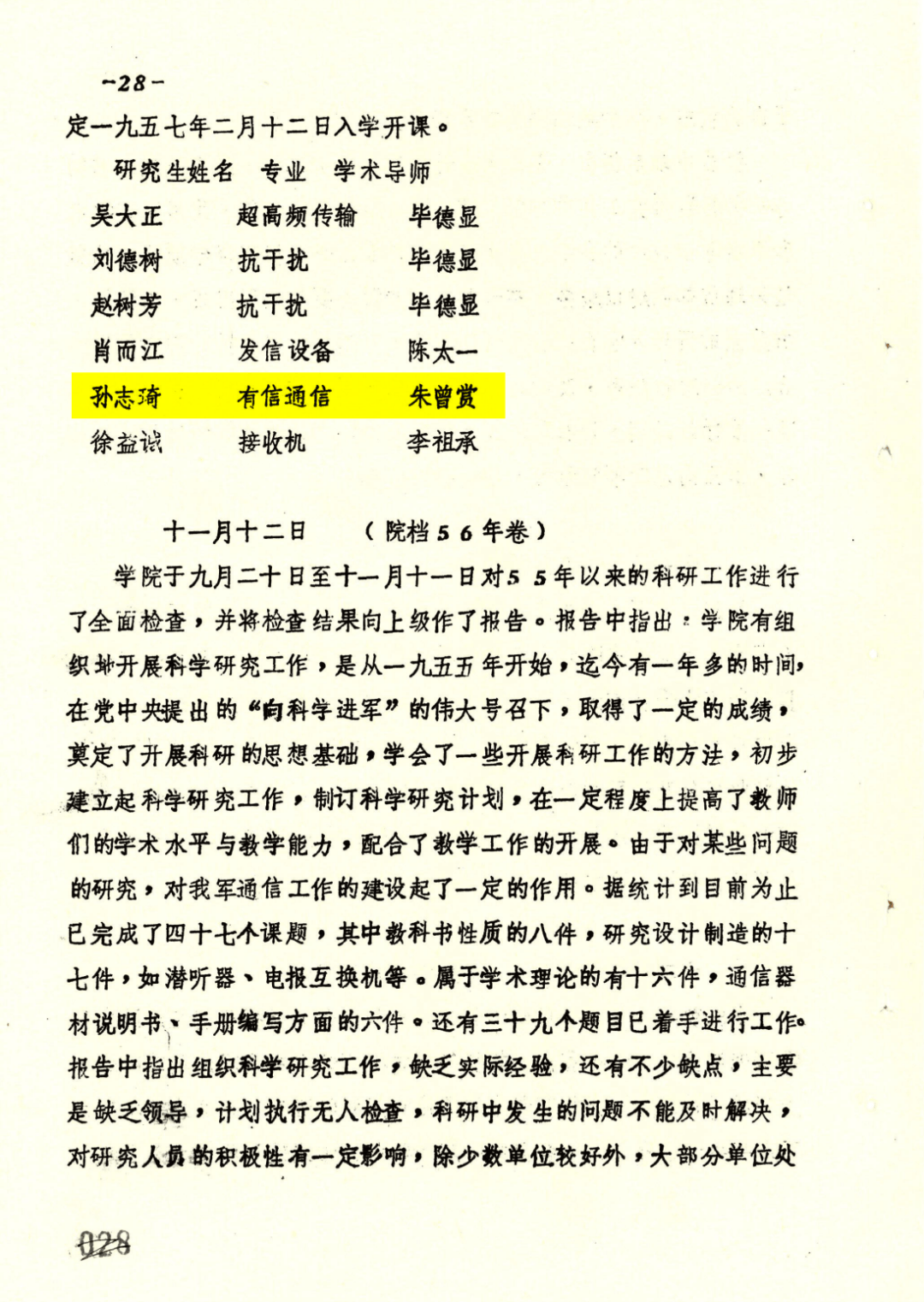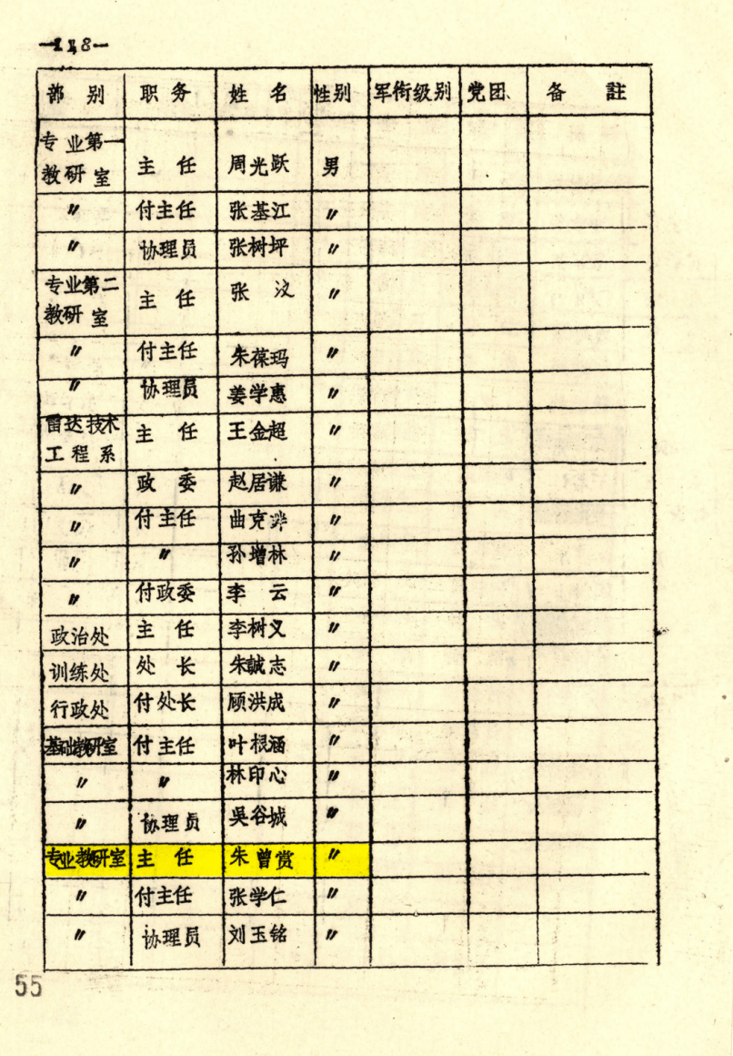 对通信兵工程学院和军事电信工程学院(今西安电子科技大学)这两所院校的专业设置和人员形成做进一步伐整:军事电信工程学院的工程系和无线工程系迁往沉庆,正军级单元,他专注通信专业人才培育。任第十教研室从任,我还上过他的课。只是传闻。